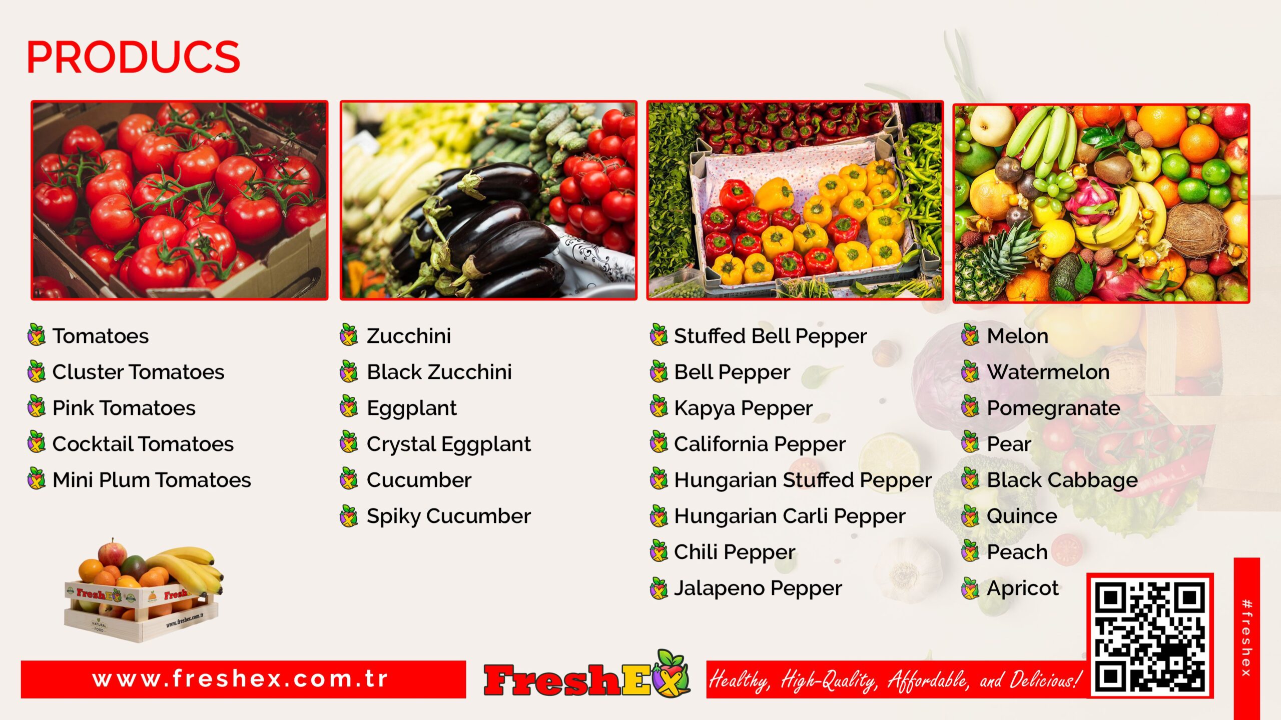 As Freshex, we are a leading producer and successful exporter of high-quality and delicious fruits and vegetables from Turkey to the global market. Our journey in agriculture and trade began in 1987 at Antalya Hal, and over the years, we have become a trusted brand with our extensive experience in the industry.